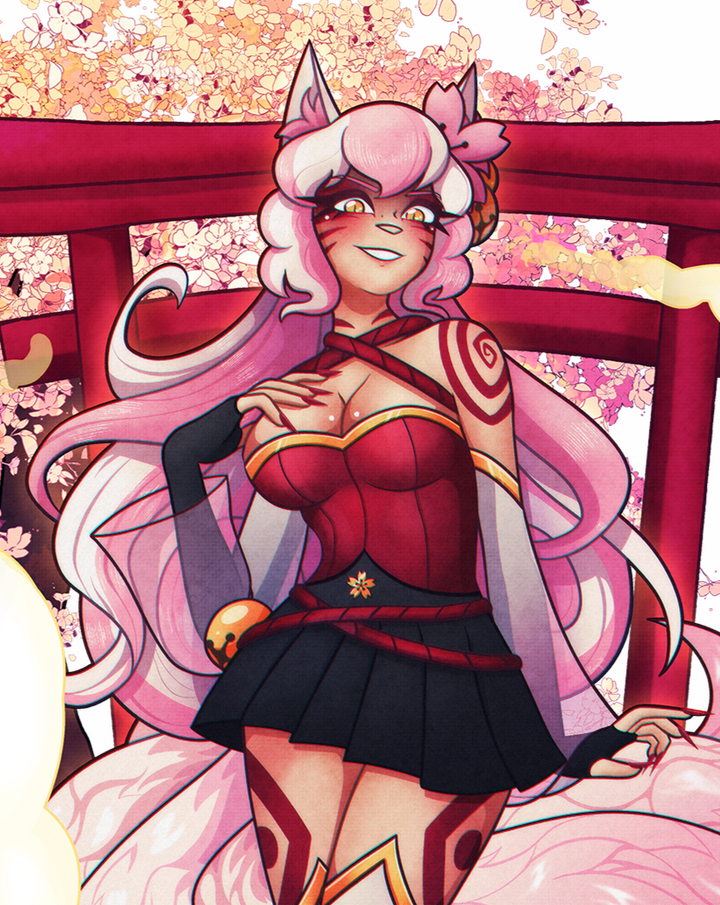 Meika is a flirtatious fox who isn't afraid to show off what she's got. She likes to play with people's minds with teasing and tricks. Cocky and self-assured, she'll do just about anything to get you to come just a little bit closer...Meika is a kitsune who feeds off the life essence of travelers in order to extend her own life. She lures her prey in with her looks, changing her appearance to the most ideal form to make them fall for her, and invites the poor souls in. After a long night of getting to know each other, Meika kills her target and consumes their soul, leaving them to never reincarnate.